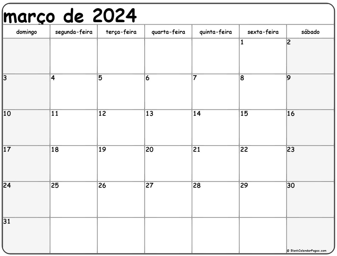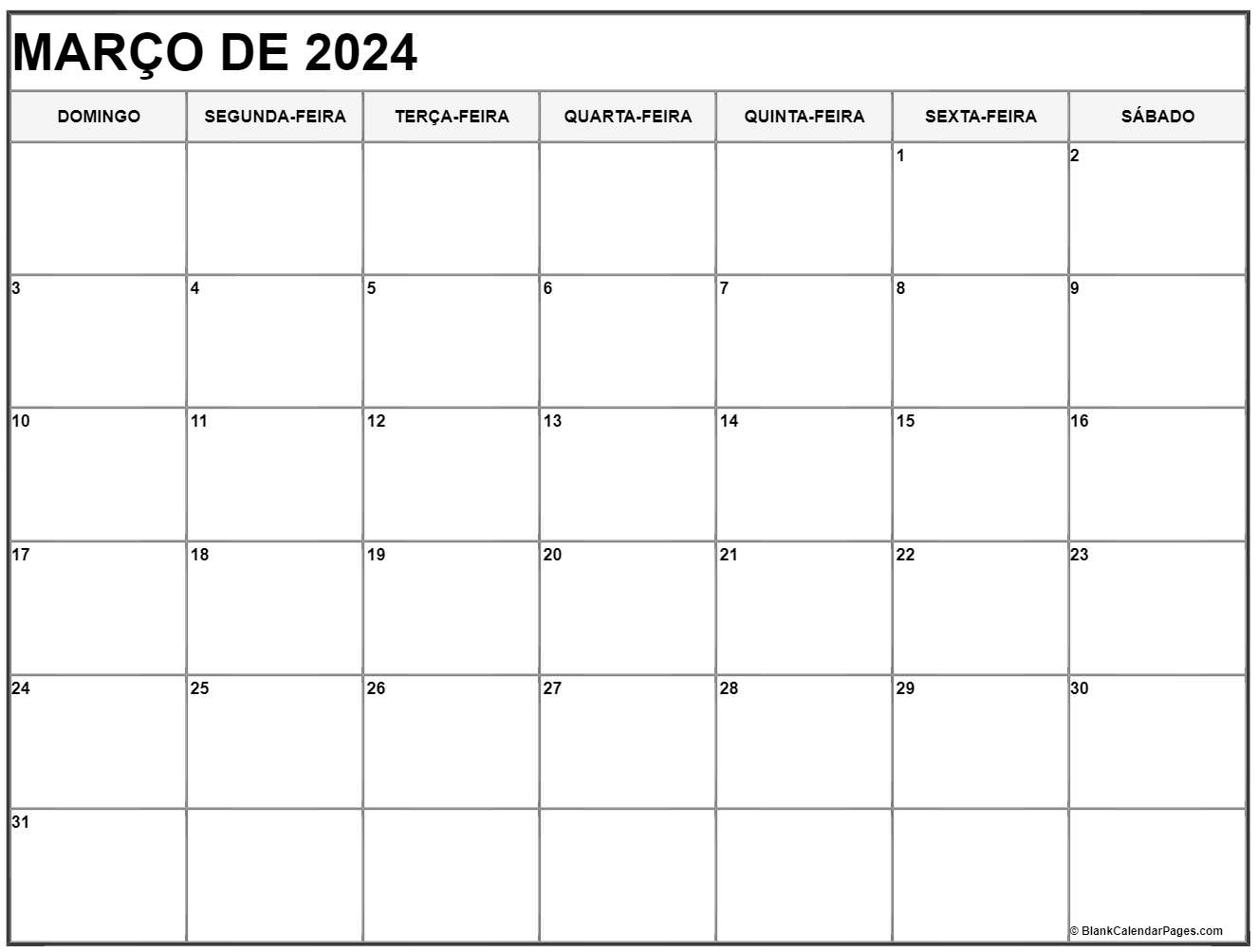 março de 2024 calendario grátis em português | Calendario março