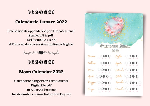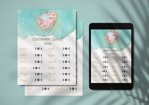 Moon Calendar lunar Calendar in English and Italian Version Etsy