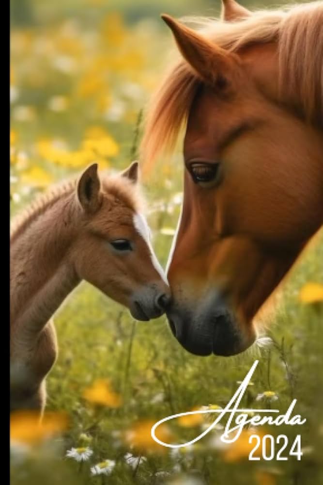 Agenda 2024: Cheval Chevaux Poulain Semainier de Poche A6 Petit
