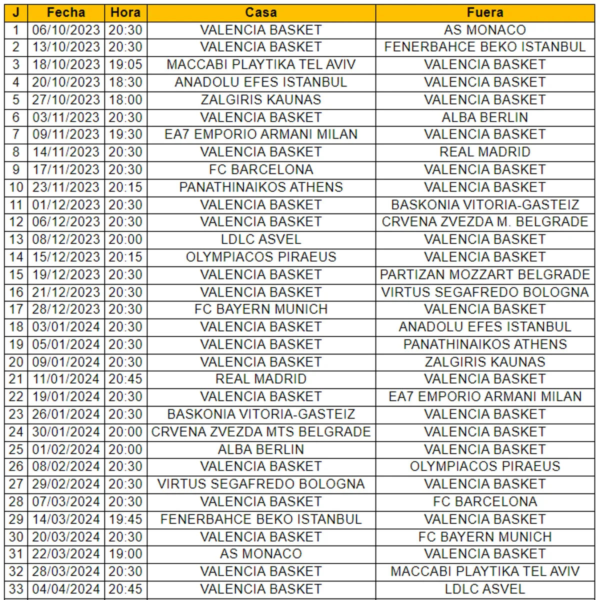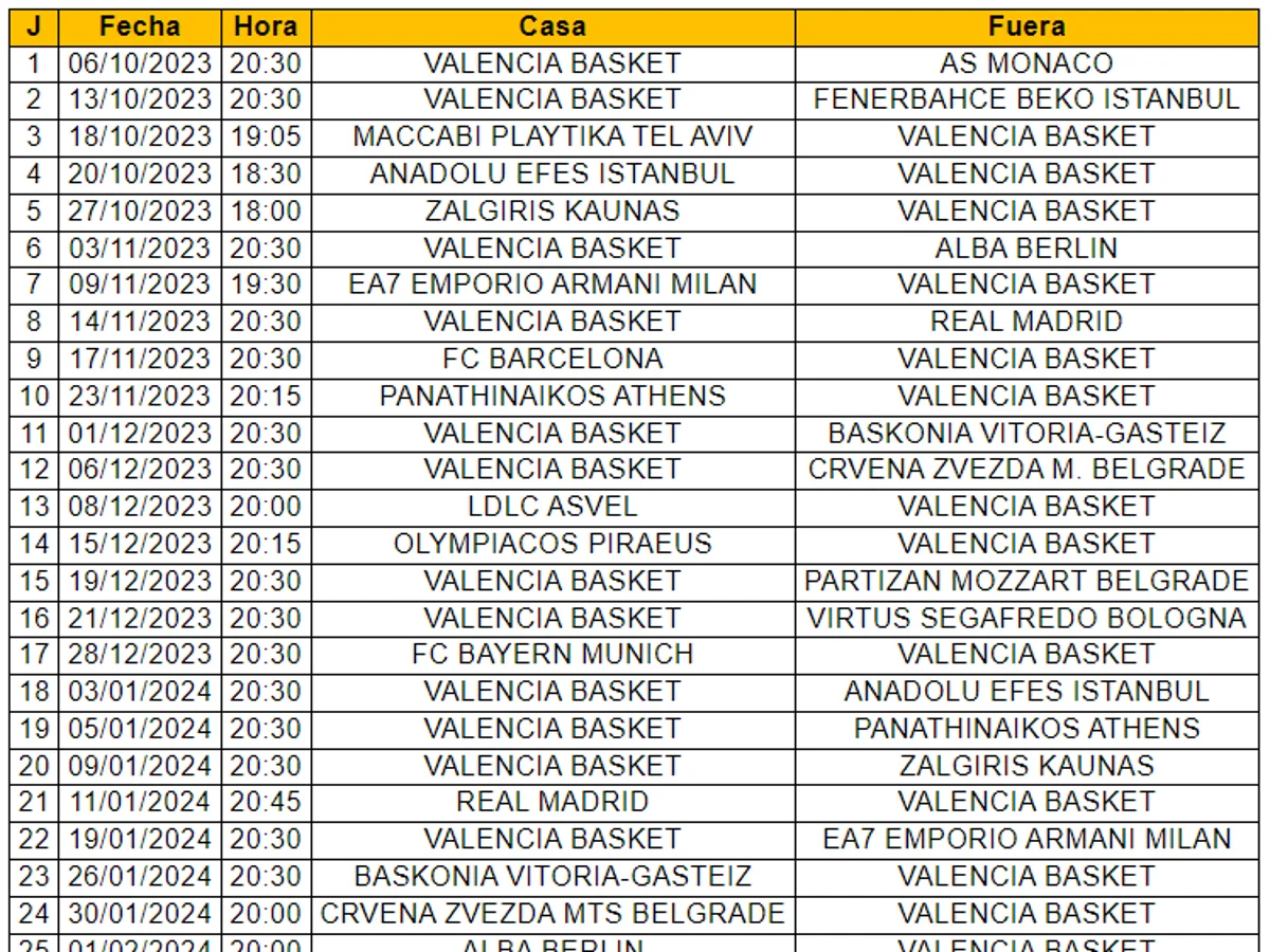 Valencia Basket ya conoce el calendario de Euroleague 2023 24