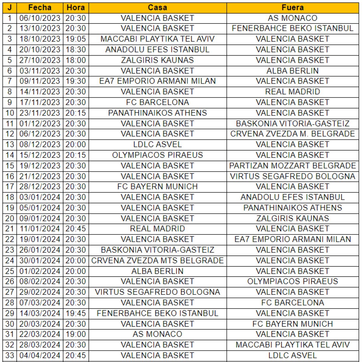 Valencia Basket ya conoce el calendario de Euroleague 2023 24